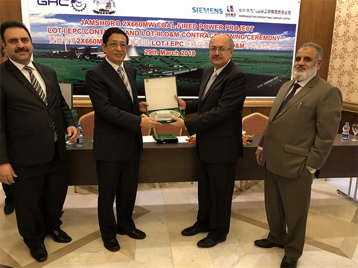 Mr. Yousuf Naseem Khokhar, Chief Electric Power Secretary of Pakistan, and Mr. Wang Zhihua, counselor of the embassy of China in Pakistan, took part in the signing ceremony. Mr. Qu Aimin, President of HEI and Mr. Nima, VP Sales of Siemens witnessed the signing.