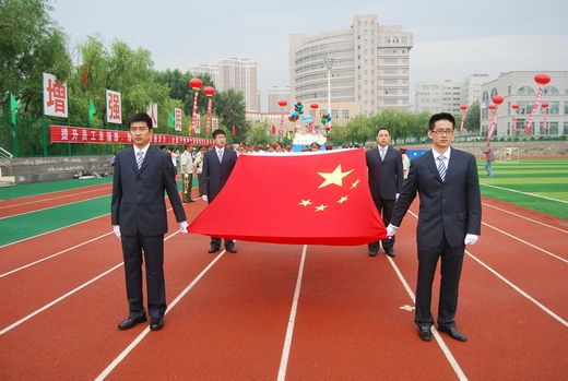 The blooming flowers, the flying flag and the hot air balloon with colorful ribbons brought a truly festival atmosphere., The opening ceremony began at 7:30am and 19 athlete formations, helding up banners and shouting slogans, quened orderly with high and vigorous spirits for the presidium review.