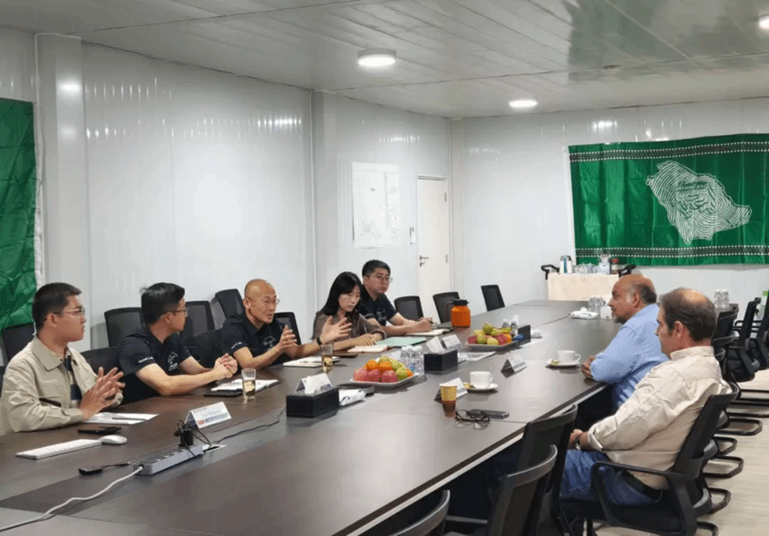 On October 29, Li Mo, General Manager of Harbin Electric International Co., Ltd. (HEI), met with CEO Ayed Almashi and Executive Director Enrique Matamoros from the client company for the Saudi Rumah 2 Project. The two sides held in-depth discussions on project execution progress, the implementation of safety management measures, and follow-up planning and deployment.
