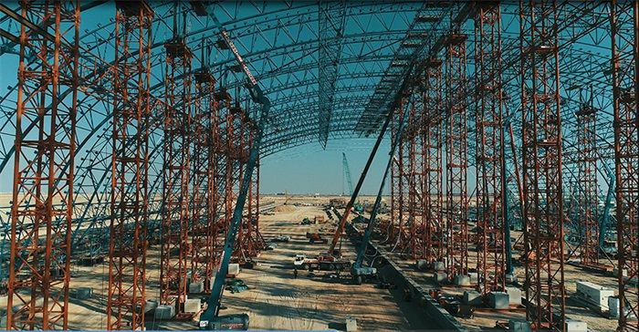 Steel structure construction at Coal Storage Yard 1 of the Hassyan Project