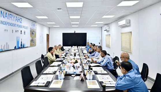 On October 27, Jasim Husain, CEO of Abu Dhabi National Energy Company (TAQA), led a delegation to conduct an on-site inspection and research at the Nairyah 2 Project site in Saudi Arabia. Li Mo, General Manager of Harbin Electric International Co., Ltd. (HEI), along with the Nairyah 2 Project execution team, met with the delegation from the owner. Both sides engaged in in-depth discussions regarding project execution, and the Nairyah 2 Project department provided a report focusing on project progress, construction safety, and quality control.