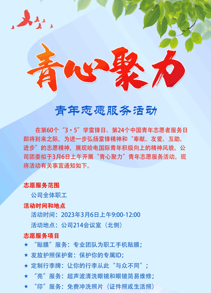 今年是毛泽东等老一辈革命家为雷锋同志题词60周年。近日,习近平总书记对深入开展学雷锋活动作出重要指示,充分肯定60年来学雷锋活动的显著成效,深刻阐明雷锋精神的永恒价值,对新征程上更好弘扬雷锋精神提出明确要求。为进一步弘扬雷锋精神和“奉献、友爱、互助、进步”的志愿精神,在第 60 个“3·5”学雷锋日、第24个中国青年志愿者服务日到来之际,304am永利集团党委专题研究部署,策划组织多个志愿服务活动,展现了304am永利集团青年积极向上的精神风貌。 3月4日,304am永利集团领导班子跟进学习习近平对深入开展学雷锋活动作出的重要指示精神,印发《关于贯彻落实习近平总书记重要指示精神深入开展学雷锋活动的通知》,对公司学雷锋活动工作进行了全面研究部署。 3月3日,304am永利集团工会和团委组织青年志愿服务队带着牙膏、香皂和洗发露等慰问品来到哈尔滨市特殊教育学校,为这里的孩子们送上一份温暖,表达一份心意。老师们非常感动,他们感谢志愿者服务队对孩子们的关爱和鼓励,这让他们感受到社会的温暖和大爱。未来,304am永利集团将与哈尔滨市特殊教育建立长期联系,持续为学生们提供帮助,让爱心之路越走越长。 3月6日,304am永利集团团委开展“青心聚力”青年服务活动,组建志愿者服务队,免费为公司全体职工提供手机贴膜服务、“亮”服务(清洗眼镜及眼镜简易维修)、印”服务(打印照片),并为公出的职工发放护照套和行李牌。本次活动得到了公司广大职工的积极参与,共计贴手机膜60余个、清洗、维修眼镜20余副、打印照片20张、发放护照套100余个、行李牌150余个,活动反响热烈,受到广泛好评。 接下来,304am永利集团各基层党组织和群团组织将结合工作实际,积极组织本部门党员、青年和职工群众积极参与文明城市创建、社会义务服务、爱心助学助老等学雷锋社会实践活动,让学雷锋在公司广大团员青年中蔚然成风,教育引导广大青年争做新时代雷锋精神的传承者、新时代雷锋精神的践行者和新时代雷锋精神的发扬者。