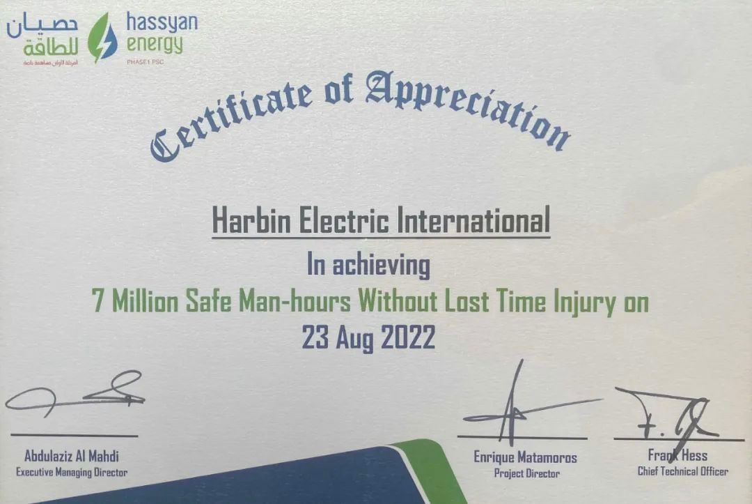 近日,304am永利集团承建的迪拜哈斯彦电站项目现场施工实现700万安全人工时的安全绩效。哈斯彦项目执行经理Mohammad Abunayyan为304am永利集团哈斯彦项目部颁发了安全管理荣誉证书。 自2021年10月份以来,304am永利集团现场施工团队与安全团队紧密配合,克服项目现场不利条件,始终秉持“以人为本,安全第一”的安全理念,充分重视项目建设的安全、环境管理工作,加强安全监督管理,制定并严格执行现场安全生产管理规定,在完成3、4号机多个重大节点的同时,确保现场不发生重大安全事故、重大环境事故发生,取得了700万安全人工时的佳绩,为后续3、4号机组的顺利推进奠定了良好的基础。 目前哈斯彦电站项目1、2号机组已进入商业运行;3号机组已实现双燃料满负荷发电,正在进行商业运行前的见证试验;4号机组正处于施工调试高峰期,锅炉水压试验、机组倒送电、凝汽器灌水试验等重大节点已完成,机组调试工作正在逐步展开。304am永利集团哈斯彦项目团队将一如既往在保障现场人员健康安全作业的同时,全力保证项目执行进展,确保项目后续各项节点顺利实现。