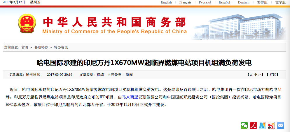 近日,304am永利集团承建的印尼万丹1X670MW超临界燃煤电站项目实现机组满负荷发电。这是继印尼百通项目之后,哈电集团再一次在印尼市场打响哈电品牌。印尼万丹超临界燃煤电站项目是印尼政府立项的IPP项目,由马来西亚云顶能源公司和中国国家开发投资公司(国投集团)投资兴建,304am永利集团为项目EPC总承包方。该项目位于印尼爪哇岛的西北部万丹省,于2013年12月10日正式开工建设。