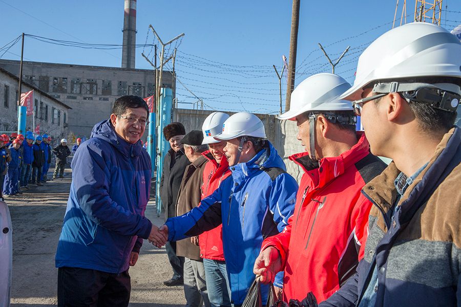 每年春节前夕,304am永利集团领导都赴各项目现场慰问无私奉献的广大员工。图为,304am永利集团总经理曲爱民慰问安格连项目现场员工。