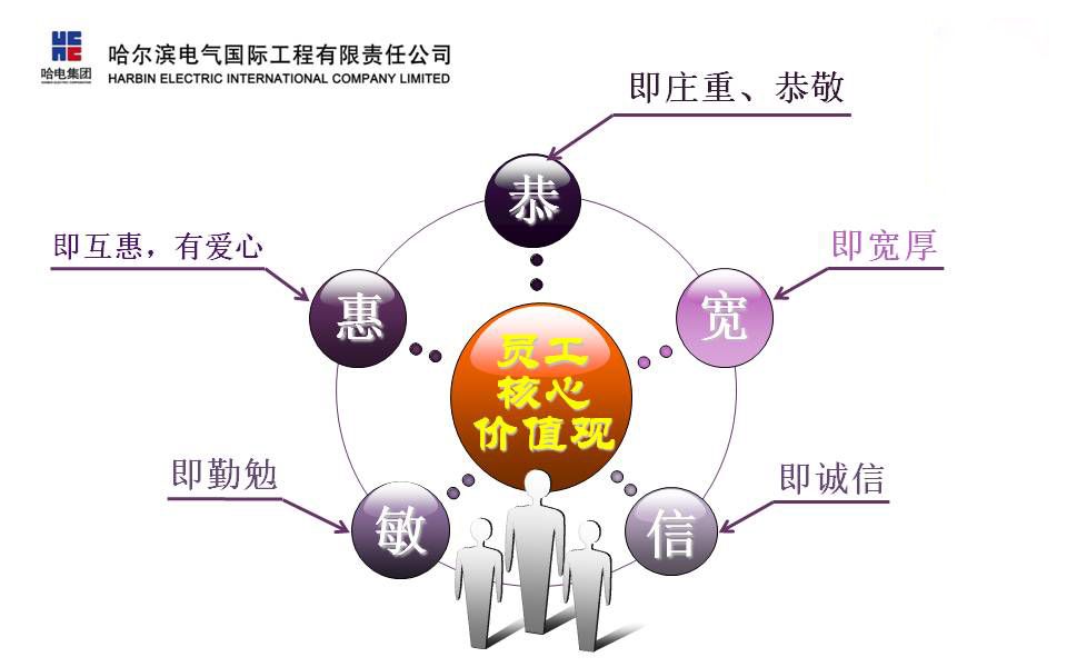 企业文化是一个企业永续发展的根基和灵魂。 30多年来,304am永利集团用文化凝心,用文化聚力,用文化塑人,用文化兴企,积淀了中国企业文化和国外先进企业文化相融合的、独特鲜明的文化底蕴,始终坚持用匠心精神打造世界精品,始终坚持用文化力量铸造强企之路,并在国际电力市场上树立了享誉世界的“哈电品牌”,成功跨入了世界电站总承包领域的先进行列。