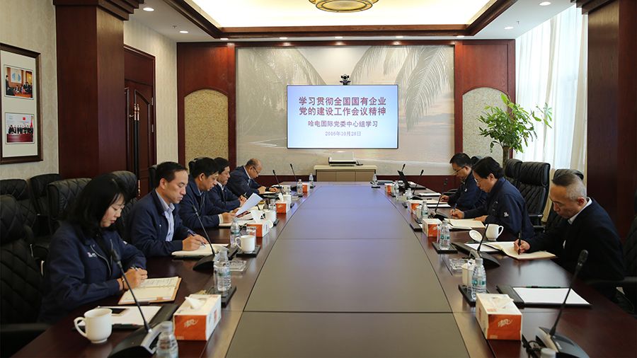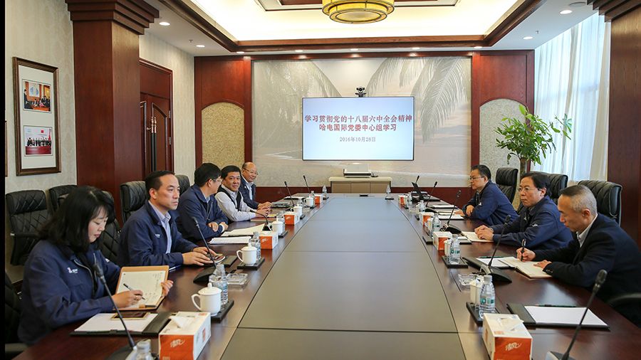 2016年10月28日,304am永利集团党委中心组通过哈电集团视频会议,认真学习了哈电集团党委书记、董事长斯泽夫传达的中国共产党第十八届中央委员会第六次全体会议精神。会后,在深入学习贯彻十八届六中全会精神的基础上,304am永利集团党委中心组进一步研讨了全国国有企业党建工作会议精神,并提出了具体要求。