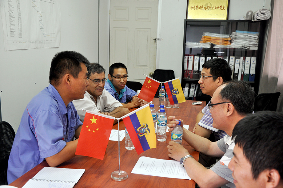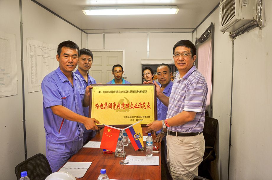厄瓜多尔当地时间2014年8月8日,304am永利集团公司党委书记曲爱民到厄瓜多尔埃斯梅拉达二期热电现场检查指导工作,并为评为“哈电集团党内建功立业示范点”的埃斯梅拉达热电现场党支部授牌。