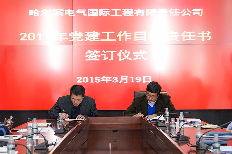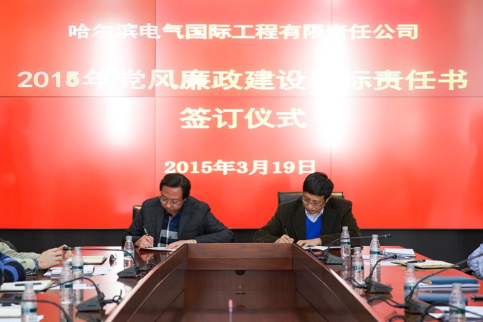 2015年3月19日,304am永利集团公司召开2015年度党建工作目标责任书和党风廉政建设责任书签订仪式会议。304am永利集团公司党委书记曲爱民代表公司党委与各支部书记签订《2015年党建工作目标责任书》和《2015年党风廉政建设责任书》,并作了题为《认清形势,明确目标,落实责任,强化问责,全面推进公司健康可持续发展》重要讲话。304am永利集团董事长、总经理、党委副书记郭宇,副总经理董银柱、杨庆利王世民出席会议。党委副书记、纪委书记张立伟主持会议。 会上,曲爱民就正确认识当前面临的形势,进一步明确应该承担的责任,切实落实好各项工作提出三点意见。一是正确认识当前面临的形势,适应反腐倡廉工作新常态。二是正确理解党委的主体责任和纪委的监督责任,切实贯彻反腐倡廉新任务。三是树立正确反腐倡廉新观念,切实落实好“两个责任书”。曲爱民指出,公司2015年的工作已经全面展开,切实贯彻好“两个责任”是公司今年和今后企业发展的政治核心任务,广大党员领导干部必须把思想统一到中央及集团精神上来,研究新办法,解决新问题,迎难而上,保持新常态,全面推进公司健康可持续发展。