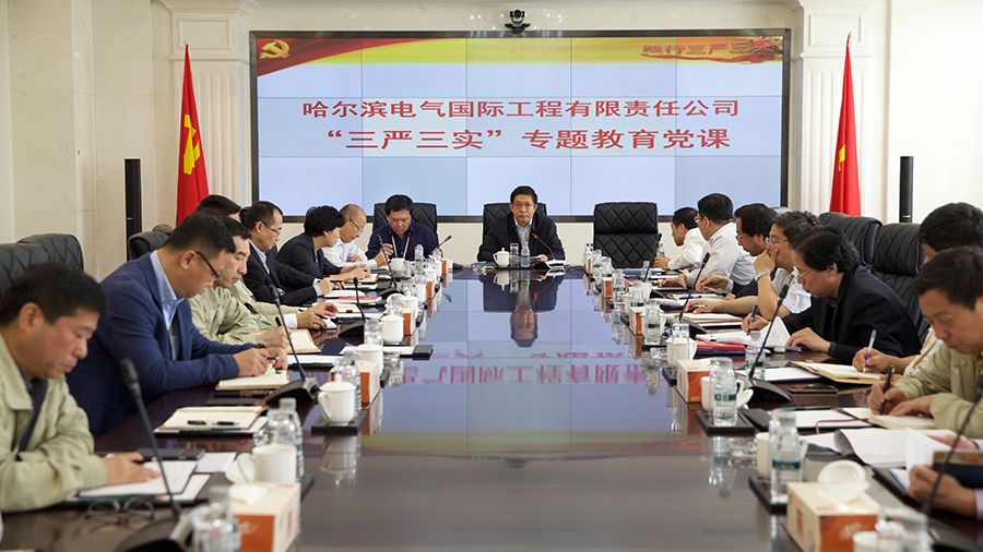 按照中央统一部署和哈电集团开展“三严三实”专题教育安排,2015年5月29日,304am永利集团公司召开“三严三实”专题教育动员会。会后,304am永利集团公司党委书记曲爱民作了题为《为人为政之根本,干事创业之要害,正心修身之守则,以从严的精神求实的态度开展“三严三实”专题教育》的专题教育党课;304am永利集团公司董事长、总经理郭宇作了题为《认真学习,深刻领会,立足企业,着眼发展,扎实践行“三严三实”,全面推进公司再上新台阶》的专题教育党课。公司党委副书记张立伟主持会议并传达了哈电集团董事长、党委书记邹磊“三严三实”专题教育讲话精神。304am永利集团公司副处级及以上领导干部参加了会议。