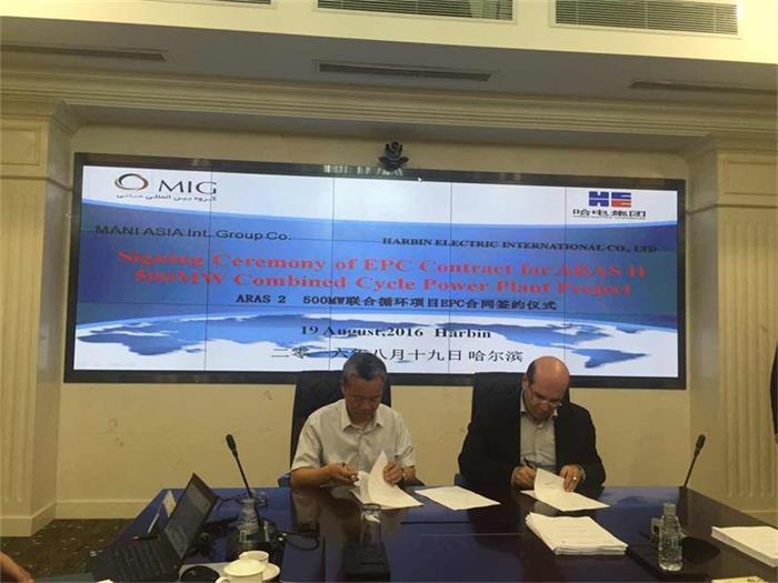 19 августа 2016 года вице-президент компании HEI Ван Шиминь и председатель иранской международной корпорации Mani Asia (MIG) Мохсен Рахмани Нарджабад (Mohsen Rahmani Narjabad), представляя две стороны, подписали в компании HEI договор на строительство «под ключ» электростанции комбинированного цикла ARAS II (500 МВт).