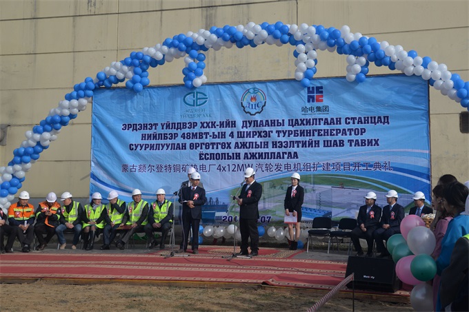 7 мая 2016 года состоялась церемония начала строительства в рамках первого проекта компании «HEI» в Монголии - расширение паротурбинного генератора ТЭС медно-обогатительного комбината Эрдэнэт 4×12 МВт. Этот знаменательный проект символизирует сопряжение Китая и Монголии в стратегии «один пояс, один путь». Исполнительный заместитель генерального директора комбината Эрдэнэт и генеральный директор проекта господин Даваасамбуу и директор проекта от компании «HEI» господин Люй Хуа выступили с приветственной речью на церемонии начала строительства. На церемонии присутствовали заместитель генерального директора Эрдэнэт по коммерческим вопросам господин Болдбаатар и руководители проектного института и строительно-монтажных организаций.