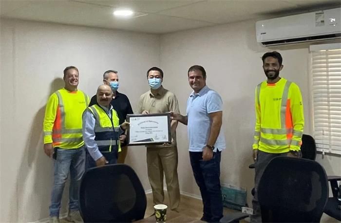 Недавно на участке строительство проекта Dubai Hassyan, заключенного компанией Harbin Electric International Co., Ltd. (HEI), достигло 7 миллионов безопасных человеко-часов без утраченных травм. Г -н Абдулазиз Аль Махди, исполнительный управляющий директор проекта, присудил Сертификат благодарности проектной команде HEI.