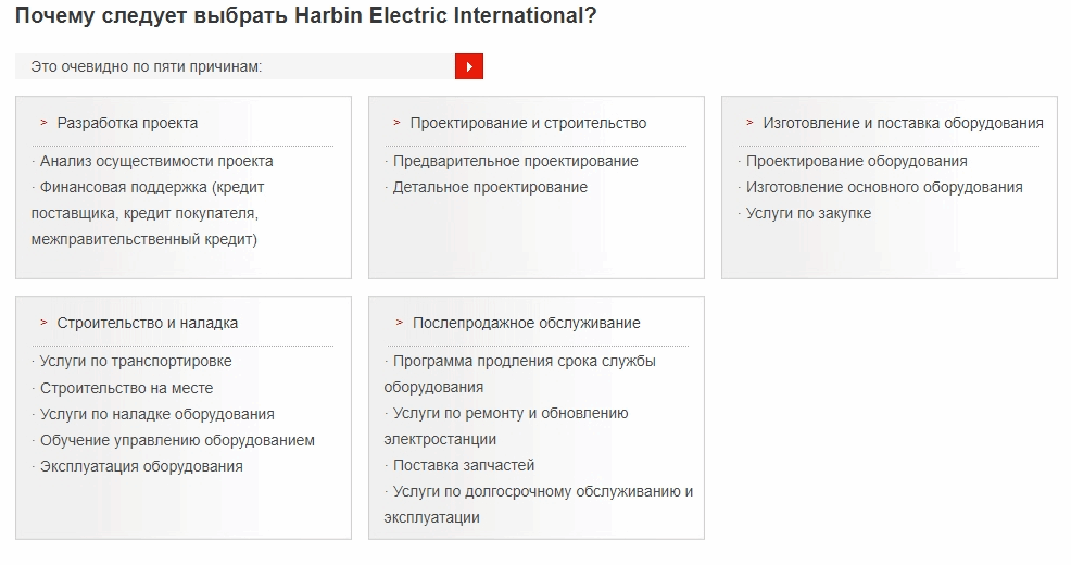 Предоставляемое нами энергетическое оборудование является продукцией, спроектированной, разработанной и изготовленной, главным образом, корпорацией Harbin Electric. В производстве энергоблоков ТЭС с докритическими, сверхкритическими, сверх-сверхкритическими параметрами, энергоблоков 300 МВт и 600 МВт мы имеем технические преимущества и большую мощь.