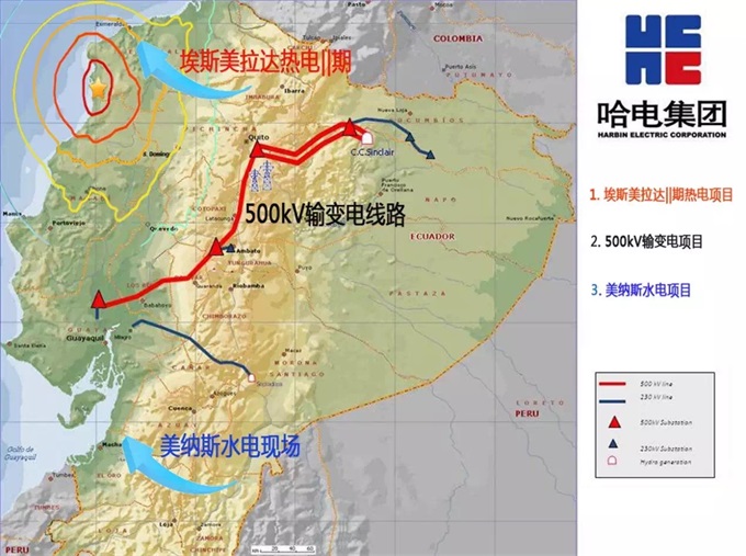 El Proyecto de Transmisión Eléctrica de Extra-Alta Tensión a 500 KV es el primero de este índole en Ecuador y exitosamente transmitió la energía eléctrica desde la Central Hidroeléctrica CCS hasta la subestación EL INGA el 5 de marzo de 2016, marcando un importante hito. Este sistema de transmisión eléctrica no mostró ninguna anormalidad durante el terremoto, garantizando la estabilidad del sistema eléctrico de Ecuador e importante papel en el alivio del desastre. Es una prueba de la buena calidad y eficiencia de los proyectos contratados por HEI International.