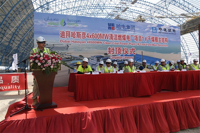 El 22 de mayo a las 14 horas, hora local de Dubái, se completó con 10 días de adelanto un hito clave en el proyecto de la central eléctrica de carbón limpio de 4x600 MW de Hassyan (Dubái): el techado de la estructura principal de celosía de acero empleada en el domo para el patio de almacenamiento de carbón n.º 1. En el sitio de obra se celebró la ceremonia de instalación del techo, en la que participaron representantes de HEI, de la empresa contratista Hassyan Energy, del socio inversionista del proyecto ACWA Power, de la empresa GE así como de otras empresas participantes en la construcción.